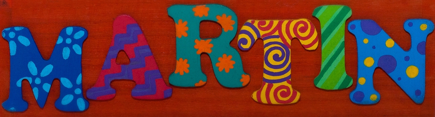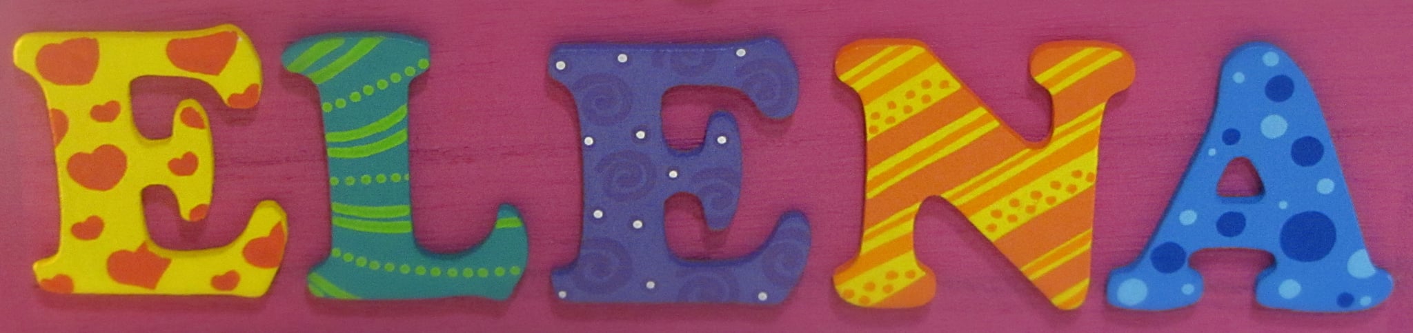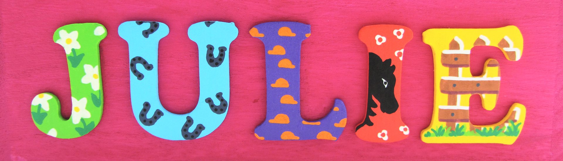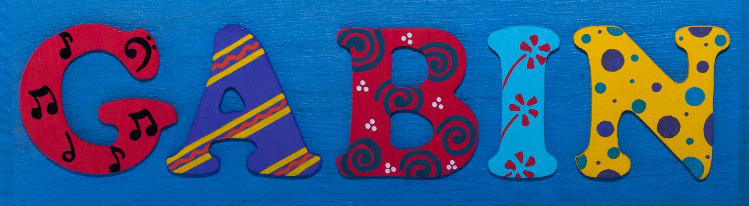Petit zoom pour voir de plus près les motifs qui décorent les lettres en bois.